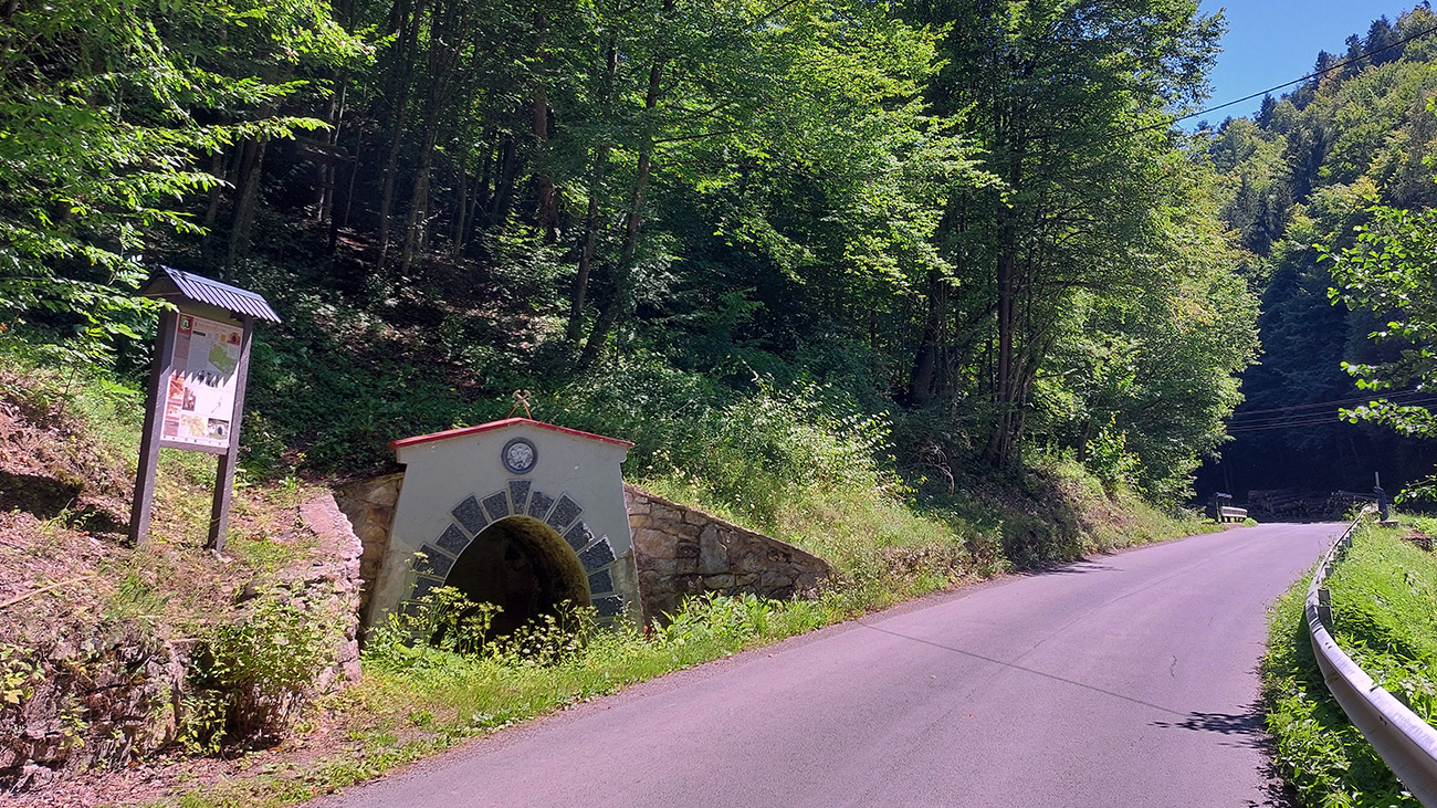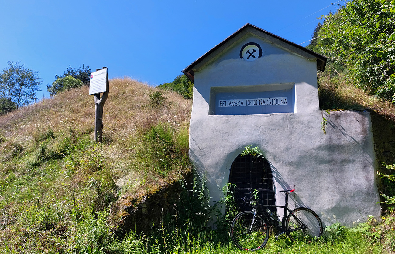 V Hodruši som sa z najstrmšieho a zároveň z tieňov hlbokých vynoril medzi domy tesne pred Baňou Starovšechsvätých. Nech nikoho dlhý názov neodradí, je to pomerne nový banský skanzen s parádnou mineralogickou expozíciou a prehliadkami podzemia, ktorý vrelo odporúčam – prevádzkujú ho totiž majitelia poslednej (stále funkčnej) rudnej bane u nás, a teda chlapi z praxe, ktorí toho vedia porozprávať toľko, čo ani permoníci netušia. Nižšie v doline to stále žije spracovaním rudy, tak je okolo cesty na chvíľku trochu „industriálnejšie“, ale potom klasika – mix vypipľaných a ošarpaných domov a budov, no jednoducho to prelínanie nového so starým, ako v celom okolí BŠ.