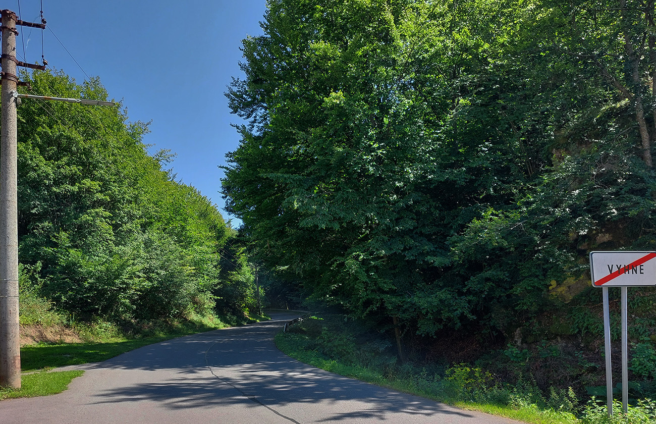 Úvod zjazdu je tu strmý, úzky a poriadne pozakrúcaný, no asfalt našťastie parádny. Lebo chládok síce exkluzívny v tom „zelenom tuneli“, ale ostré kontrasty malých fľakov svetla a tieňa by parádne maskovali akúkoľvek jamu na ceste. Našťastie som netrafil nič, ale v jasnom počasí to chce na žiletke ozaj opatrne: