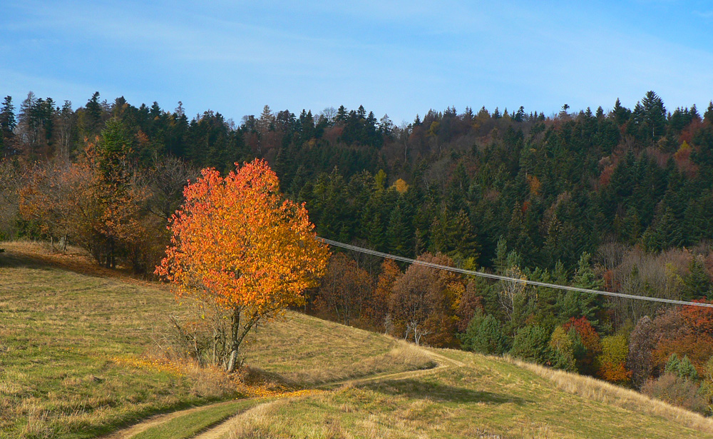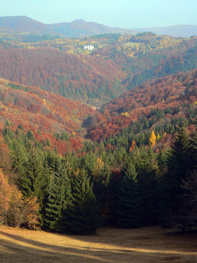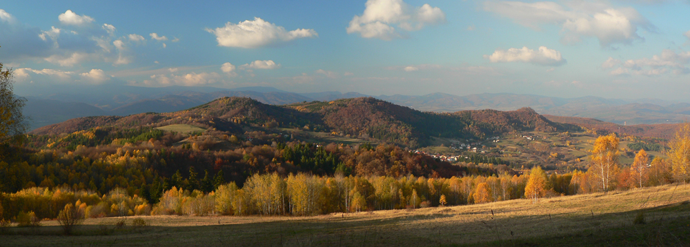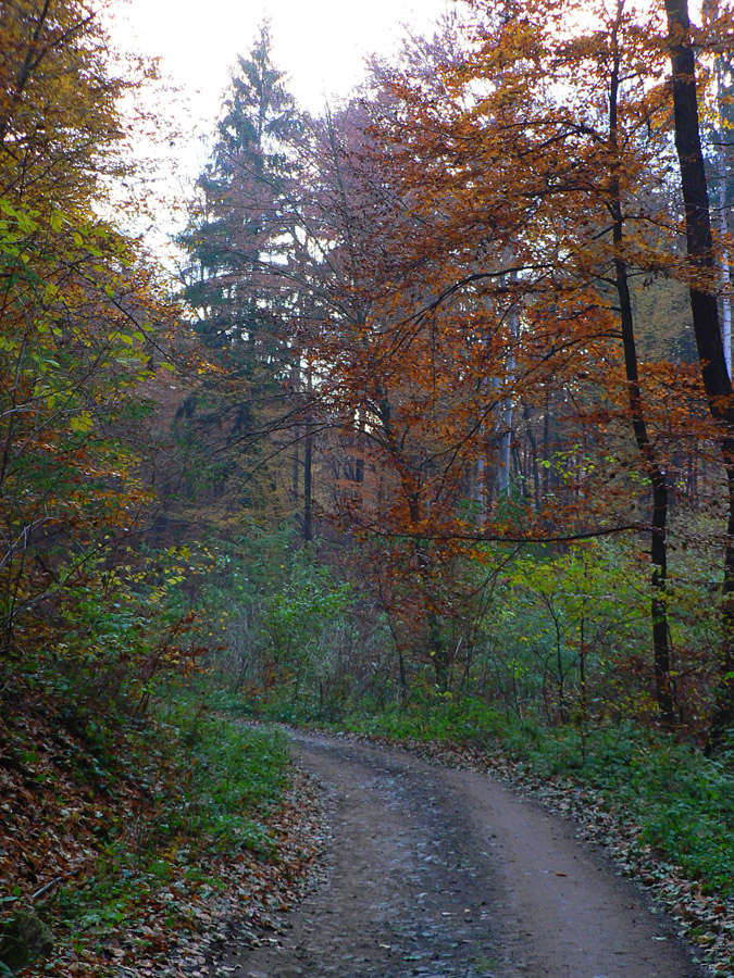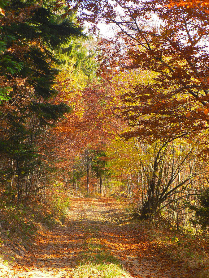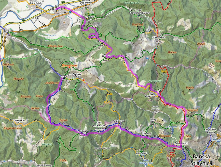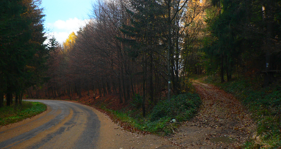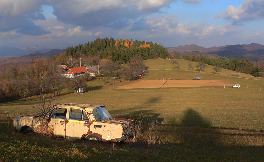 Štiavnické vrchy: tam sa dá motať po prírode, pamiatkach a cestách do zblbnutia. Krajina, ktorú vytvorila praveká sopečná a stredoveko-novoveká banská činnosť, je neskutočne pestrá. Keď sa k tomu prirátajú ostré a tiež pestré farby neskorého, novembrového babieho leta, netreba viac slov, treba ísť! Je jedno či pešo, či na bajku, väčšina tunajších trás je vhodná pre oba spôsoby pohybu. A v zime na bežky samozrejme tiež. Preto som tentokrát vyberal podľa množstva lúk, aby som sa len po lese nemlátil. Požiadavky pri náhľade do mapy spĺňal okruh okolo doliny, ktorá je jednou z hlavných prístupových trás do Štiavnice od Hrona – z Bzenice cez Vyhne a Banky.