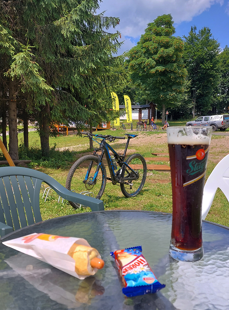 Na Skalke to žilo najmä feratovaním a požičiavaním „električiek“ keď som tam dorazil, tak obligátna kofča, horalka a doprial som si aj hotdog, bo už hlaďák domŕzal :-) V bufete pri bežeckom štadióne. A čakal ma dlhýýýý zjazd. Najskôr mierny, aj čo – to do kopca po červenej, aj nevyhnutná krátka fotozastávka pri Görgeyho tuneli, potom už ale šotolinový fičák dole k Turcu, k lesníckej chate Obrázok, kde som prvý raz uzavrel okruh. Ráno som sa okolo chaty štveral hore na Tablu.