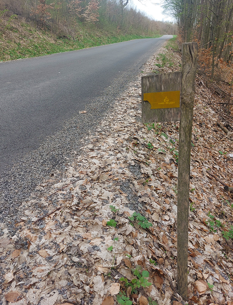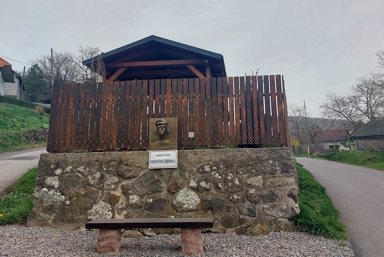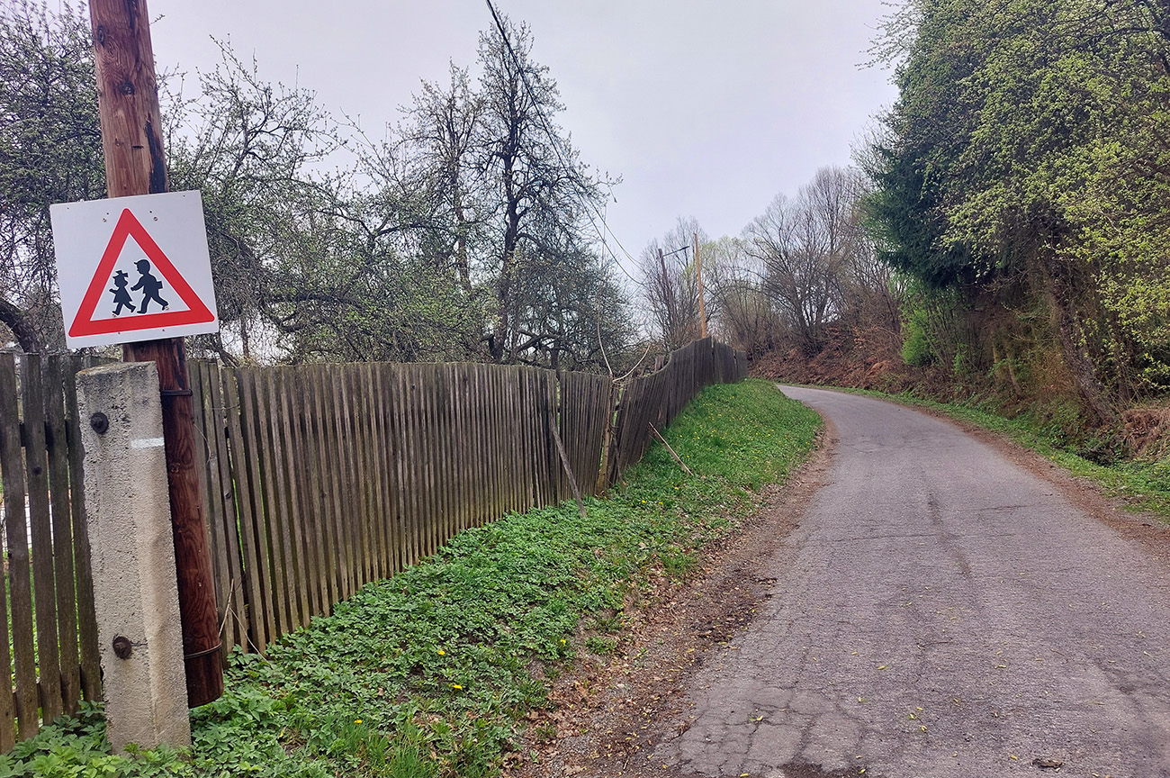 Kľačany sú zas najvyššie položenou časťou Trnavej Hory, aj keď tabuľu majú ako seriózna obec :-) Aj tu je štart oproti stanici pri Hrone, tá ale patrí susednej Jalnej. 4,2 km a 290 v. m tiež začína poriadne strmo a najstrmšie je to pred železničným priecestím. Ale ďalej sa viac striedajú oddychové a prudké (aj dvadsiatkové) úseky. Prvý raz von spomedzi domov sa ide strmou serpentínou, nad ďalšou sú pekné výhľady. Strmé zákruty vedú strednou časťou obce, do ktorej sa vchádza cez „námestíčko Mekyho Žbirku“ – jeho busta s lavičkou je na múre hneď prvého domu. Narodil sa v ňom Mekyho otec. Sklon sa potom položí až do roviny popri „družstve“, no s výhľadom na tú tabuľu „Kľačany“ sa to zas dvihne. Ešte jedno vydýchnutie potom popri kostolíku a rybníku, a už vidno finálnu stenu. Úzku, našťastie krátku. A nad ňou zvonička, lavička a dokonca knižnička. S exkluzívnym výhľadom, aj na nasledujúcu Pitelovú.