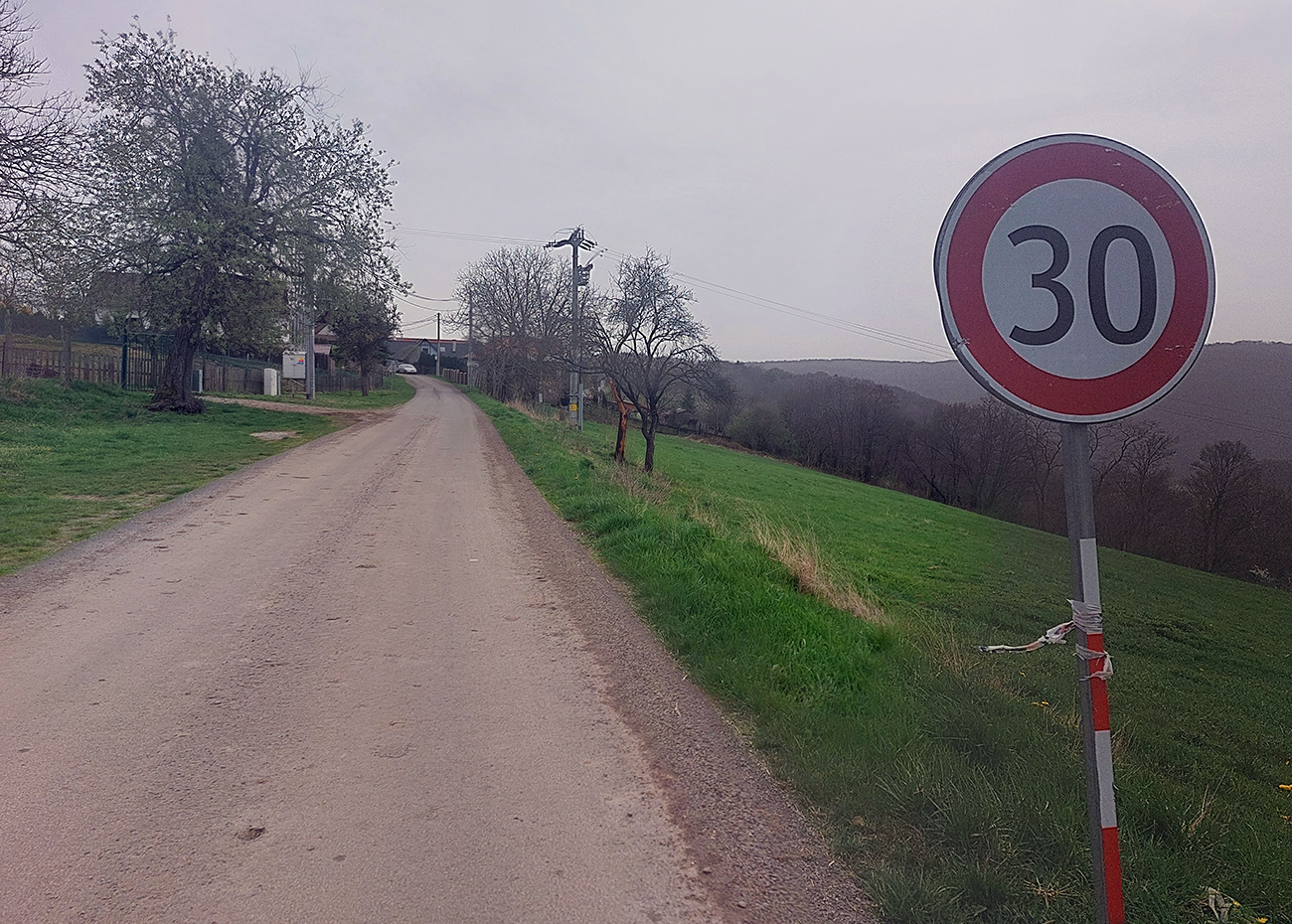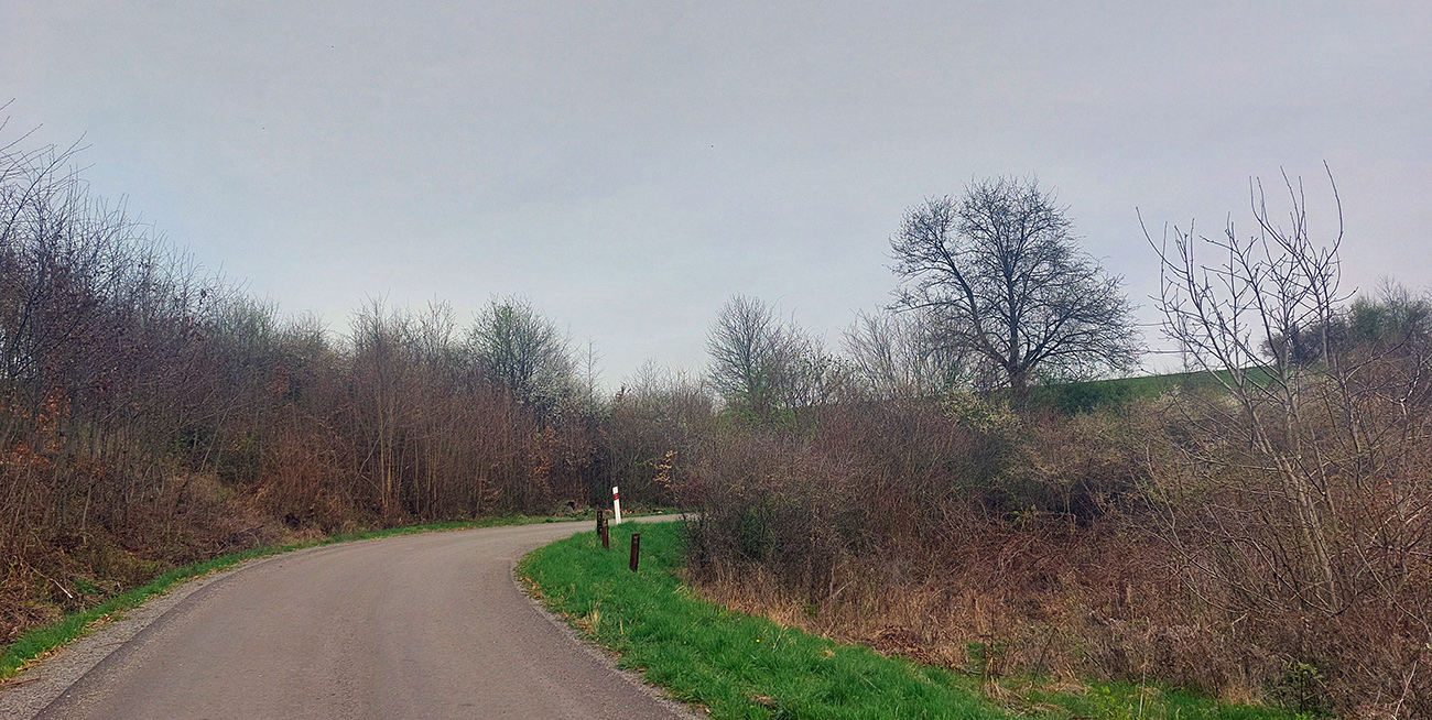Horná Dúbrava je časť Hronskej Dúbravy, taká väčšia osada, vysoko na kopci nad hlavnou dedinou. Odbočka z hlavnej je takmer priamo oproti železničnej stanici, má 3,2 km a prevýšenie 320 m. Začína to tu poriadne zostra (max. 20%), popri škôlke a zákrutou okolo cintorína. Potom krátke vydýchanie pomedzi najvyššie položené domy a les, ale na konci ostrá serpentína a ide sa znovu strmo, našťastie v tieni lesa. Tam a aj pred cieľom bol nedávno ešte dosť mizerný asfalt, ale už je nový. Zvyšok tiež hladučká pohoda, len v cieli medzi domami hrboľato. Cesta taká užšia, ale s osobákom sa človek vyhne komfortne. Slnko vie potrápiť, keď sa cesta vynorí na lúku s posedom a potom tesne pred vrcholom. Ten je asi na kilometri 2,6 - potom už len mierny zjazdík medzi domy a otočka na námestíčku „Laz Vegaz“. Špecialitou cestou hore sú „hand made“ drevené pätníky popri ceste.