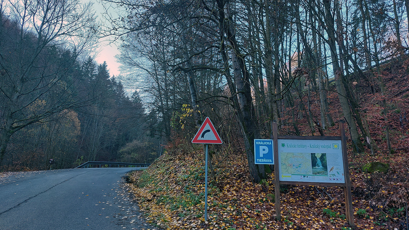 Takže najskôr Králiky. Tabuľa nad námestím navedie, jednoducho doľava. Prvé dva kiláky cesta stúpa relatívne jemne - tienistou, hlbokou dolinou smerom na západ. Aj popri rodnom dome ďalšieho miestneho slávneho rodáka Jozefa Murgaša (ktorý už má najnovšie dole na námestí aj sochu). Za malým parkoviskom pri odbočke ku Králickej tiesňave to ale začne!