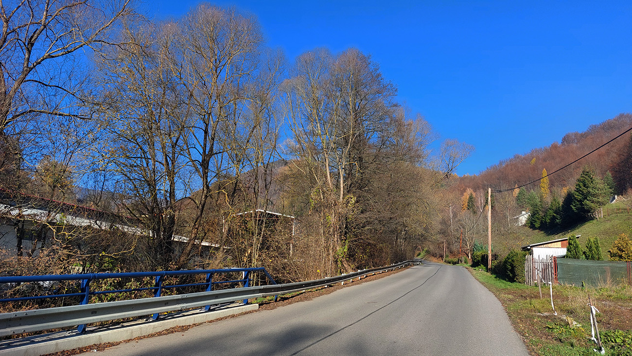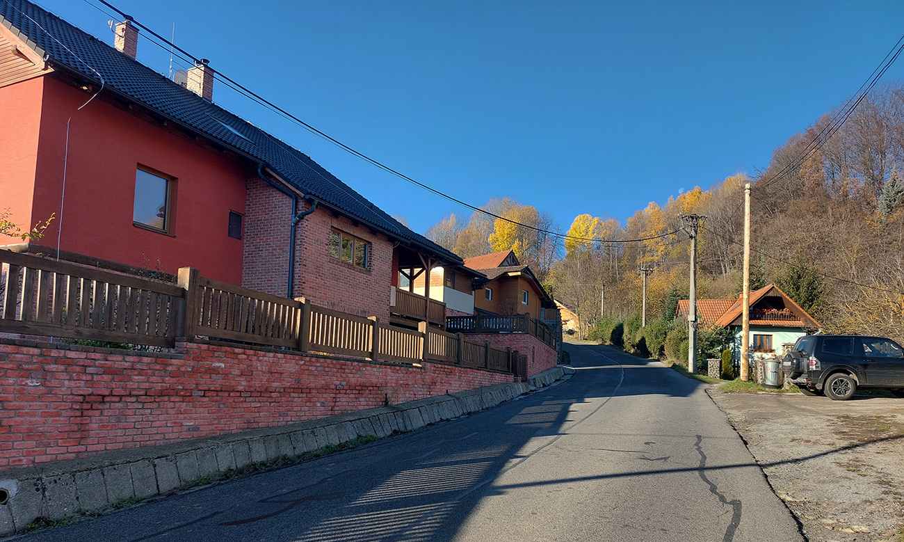 Vracačka doprava a sklon zbrutálnie. Taký ostane len s pár miernejšími pasážami na predýchanie hore celou dedinou, ktorá začína hneď za tou serpentínou. Nepríjemne dvojcifernými percentami sa to pod kolesami len tak hemží, dopravnú značku so známou dvanástkou tu ale nikde nedali, možno sa im zdala hodnotou nedostatočná :-)