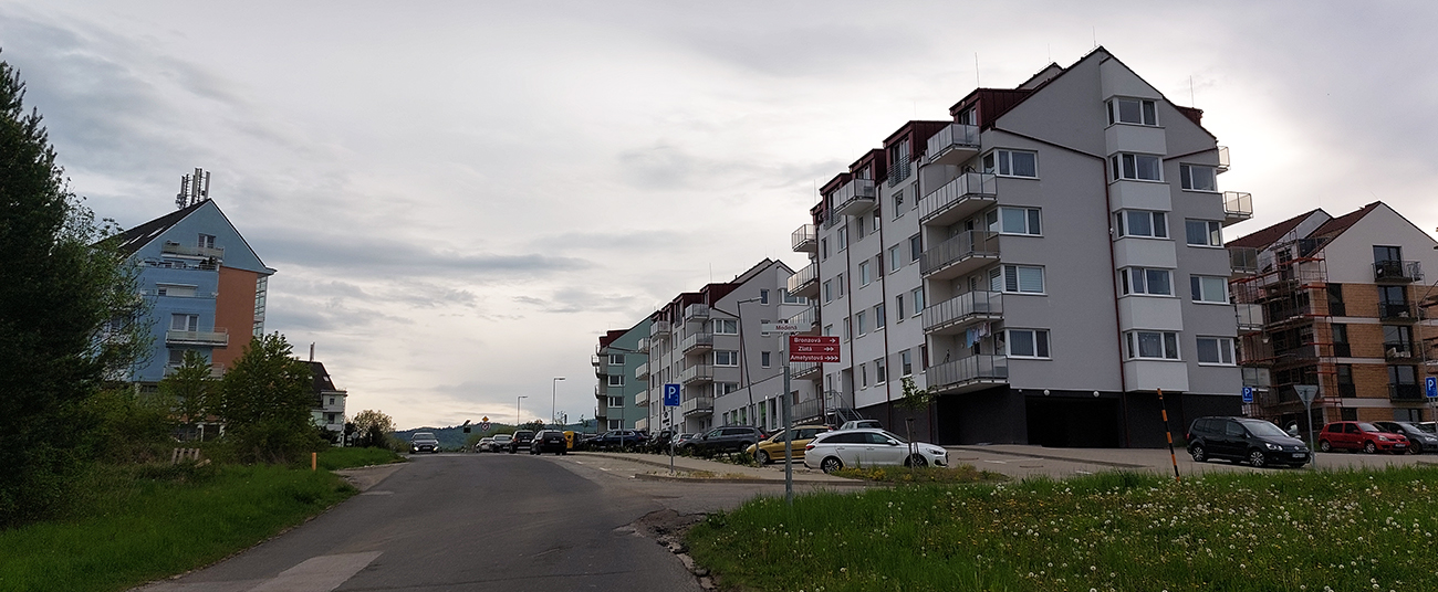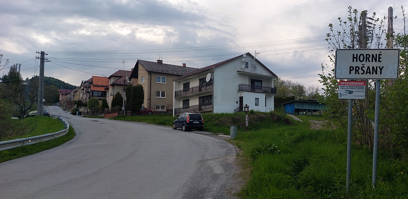 Najskôr teda Horné Pršany. Stúpanie začína dobre vyznačenou odbočkou zo Sládkovičovej ulice v Radvani, len kúsok od hrobu barda slovenskej poézie, na južnom okraji sídliska. By sa pán Andrej možno divil, čo to tu dnes stvárame na tých divných vozidlách. Hneď na úvod treba upozorniť, že najmä v dolnej polovici stúpania je počas bežného dňa intenzívna premávka. Už za socíku malo totiž na Pršianskej terase vyrásť veľké sídlisko, čo sa síce nezadarilo, zato dnes tam pribúdajú rodinné aj bytové domy ako huby po daždi a emhádé tam samozrejme často nechodí.