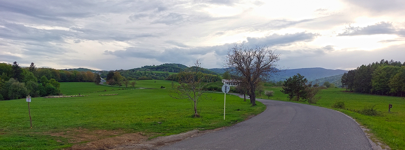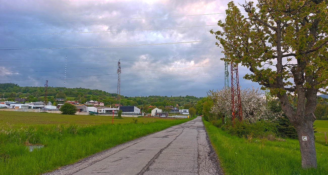 Aj tu je to najstrmšie hneď na úvod, potom sa to za prvou zákrutou trochu zmierni, ale stúpanie je celkovo oveľa plynulejšie ako na Pršany. Nad domami ešte prechádza popri záhradkárskej osade a ponad ovčín (pozor, niekedy to tam podklzuje, hehehe). Naokolo lúky, popri ceste nahusto stromy. Sranda končí pri bráne do areálu vysielača, po takmer presných štyroch kilometroch s prevýšením 246 metrov. Sklon trochu jemnejší ako na Pršanoch. Segment na Strave som ale nenašiel, to čo? Žeby kvôli asfaltu, ktorý je tu miestami trochu hrboľatejší? No nie je to žiadna tragédia - ani pri ceste dole, len na niektorých úsekoch treba dať pozor na výtlky.