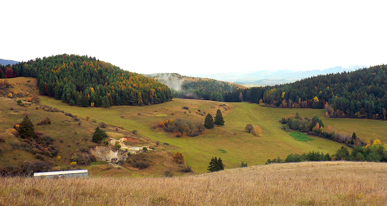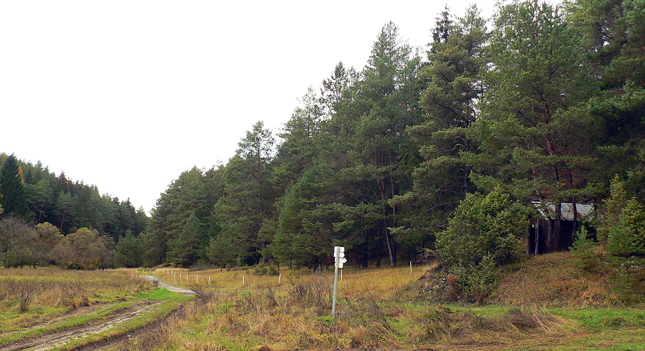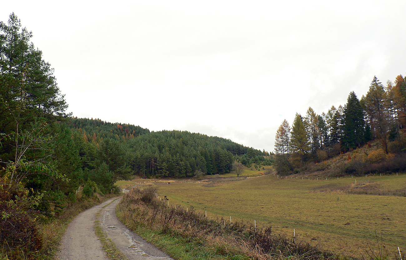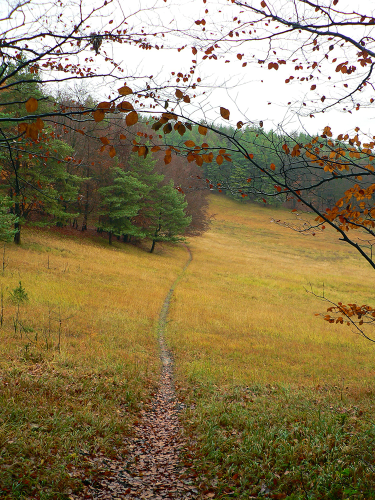 Najprv dlhá úzka lúka dolinou, potom ešte užší priechod pomedzi lesíky a rooooozľahlé lúky. Držiac sa okraja lesa pri ľavej ruke som to nasmeroval priamo na sever, na horizont. Cesta hore lúkami ma viedla jednoznačne. Z horizontu sa okrem tej mojej rozbieha ďalších päť ciest, ale to už som videl, ktorou sa mám spustiť nazad do doliny Rudnianskeho potoka a aj kade potom z doliny odbočiť do začiatku „severnej časti osmičky“. Takže bol čas na malý prieskum dvoch najlepšie vyzerajúcich ciest - doľava, do kopca: