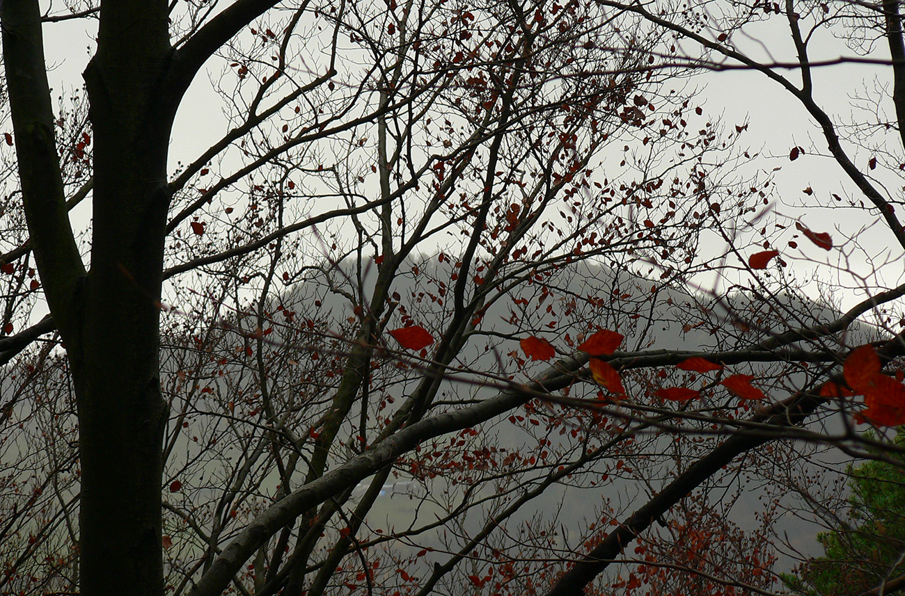Spokojný s úlovkom som to teda nasmeroval už po červenej smerom do Vyšehradského sedla, ešte s jednou krátkou zachádzkou doprava na kopec (lebo chodník) – ale z výhľadu nič, len pomedzi konáre presvitala silueta Vyšehradu.