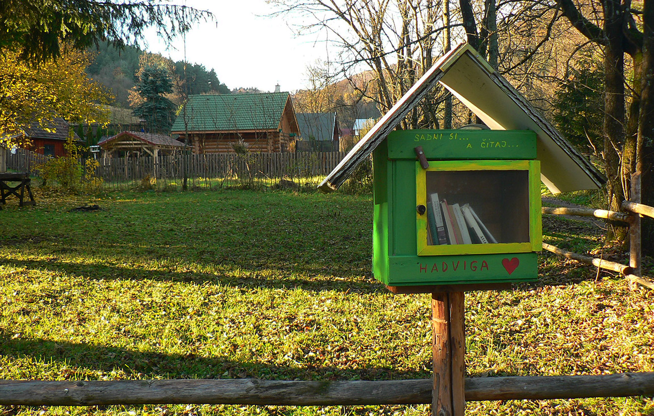Taaak, vykochaný výhľadmi spustil som sa do doliny a cez protiľahlý horizont som preskočil do susednej, v ktorej už sa krčí Hadviga. Ale až do nej som zdola nedošiel, dám si ju neskôr, zhora. Teraz som odbočil po cyklotrase do Brieštia, zas cez pekné pasienky s voľne rozhodenými kravami. Nasadil som náhubok, aby som hore dedinou neprovokoval miestnych, a peknou lesnou cestou (stále tá cyklotrasa) som vydupal na Repeš – na ďalšiu z tunajších veľkých horských lúk s parádnou chalupou hneď pri východe z lesa, priamo pod Závozmi. Ešte krátka zachádzka za výhľadmi (k Veľkej Fatre a najvyšším kopcom Žiaru) na susednú (ako inak) velikúúú lúku. Cvak cvak a išlo sa nazad, a zas červená „hrebeňovka Žiaru“.
