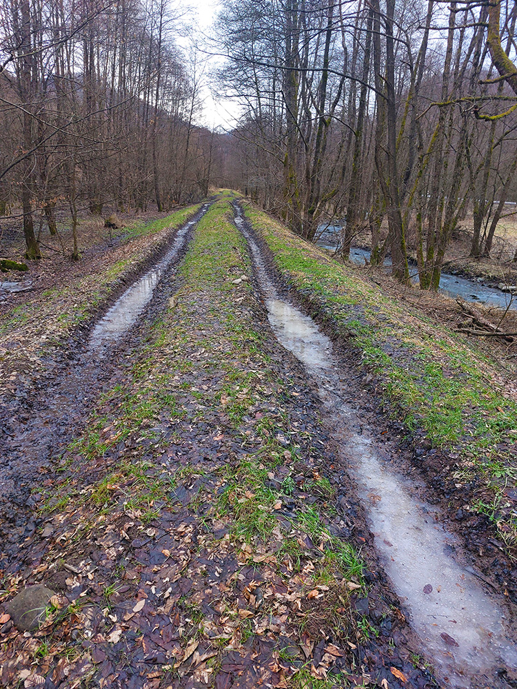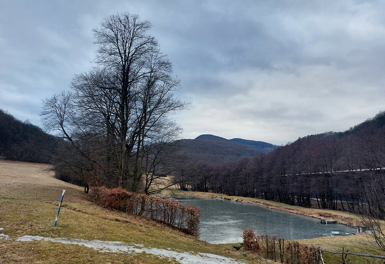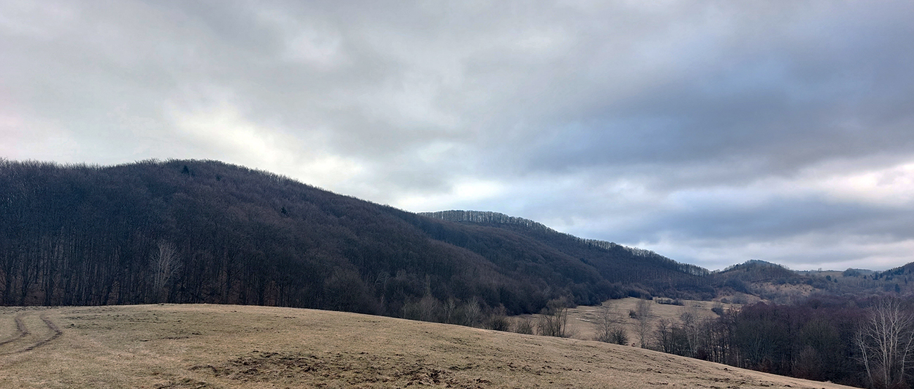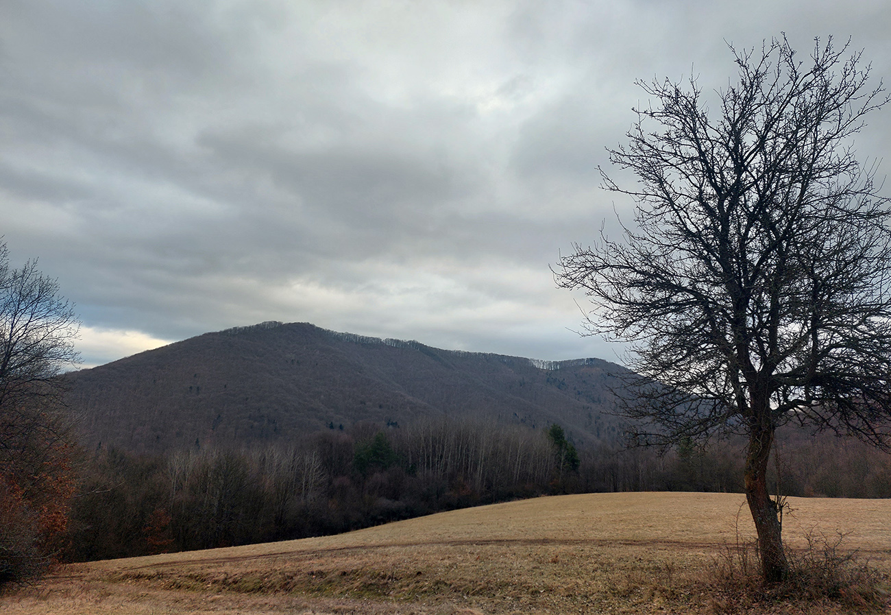 Symbolický názov pre akciu symbolizujúcu počasie na začiatku februára. Lebo uragán nad pásmom lesa a prílev teplého oceánskeho vzduchu od severozápadu, samozrejme s dažďom aj vo vyšších polohách, ma spoľahlivo zahnali zas raz viac na juh, do závetria. Do Štiavnických vrchov, kde o snehu už len spomienky kolujú. Čiapka aj vetrovka išli do batoha, len čo som v Hronskej Dúbrave z vlaku zliezol, a ešte že celý deň ozaj fúkalo, inak by som sa dobre uvaril. V pláne bol taký improvizačný okruh cez Kozelník, Rejchard, okolo dediny Močiar z troch strán a cez Demian nazad do Dúbravy. Behať sa to inak veľmi nedalo, cesty poriadne hrboľaté, navyše dosť toho bolo ukrytého pod lístím. Od začiatku som sa len modlil, aby neboli dlhé úseky rozmixované traktormi. Nakoniec bolo viac ľadu, zákerne ukrytého pod zdanlivo pevným povrchom. Aj preto ak sa nejaké blatko našlo, plytké bolo – hlbšie zem ešte zamrznutá. V lete by som tam nešiel, sú to zväčša síce lesné cesty, ale často pozarastané alebo fádne. Estetika krajiny tiež nič moc, ale na vyvenčenie dobré (GPX je hore, ak niekto chce). Nejakých 30 km z toho bolo nakoniec, ani nie beh, skôr rýchlejšia turistika: