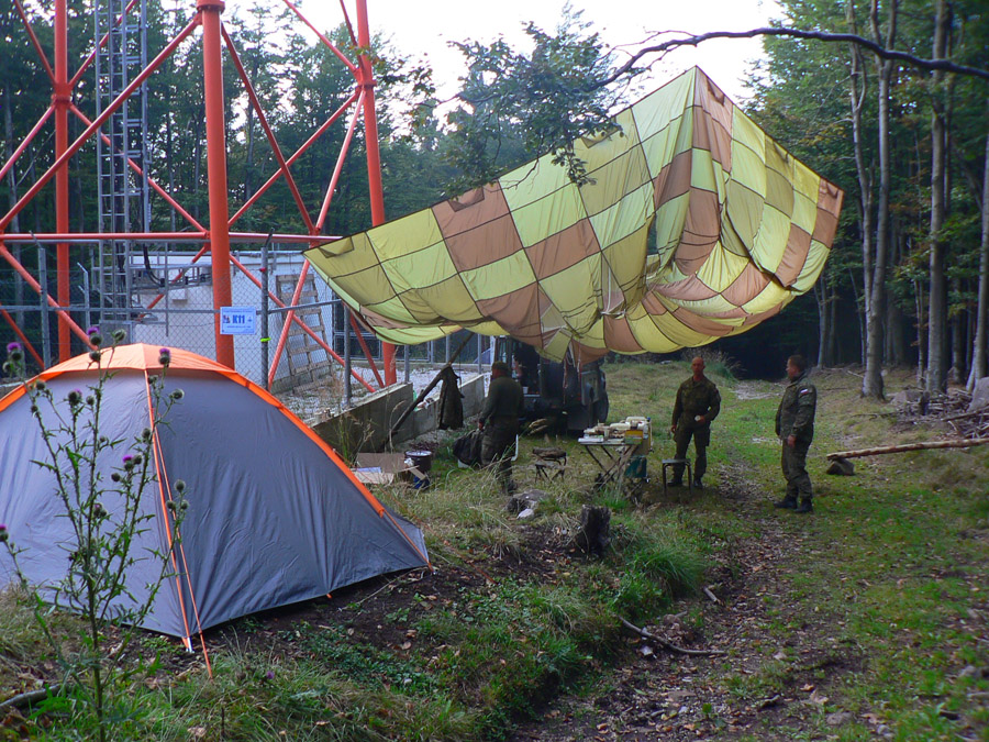 Vtáčnik organizátori olepili igelitom, kontrola je vo vrcholovej schránke, zostup je suchý, paráda. Mraky sú vysoko, slnko konečne nízko. Valím čo to dá, furt mám dojem, že ma každú chvíľu musí Vlado Tejkal chytiť. A ten nikde, zato pri vysielači páni vojaci (K11) a ich fajnéééé chlebíky s pažítkovou pomazánkou. V tom hice dole na nížine som do seba nedostal okrem vody nič. Ešte že sú gely, inak by som umrel už pri tých koňoch.