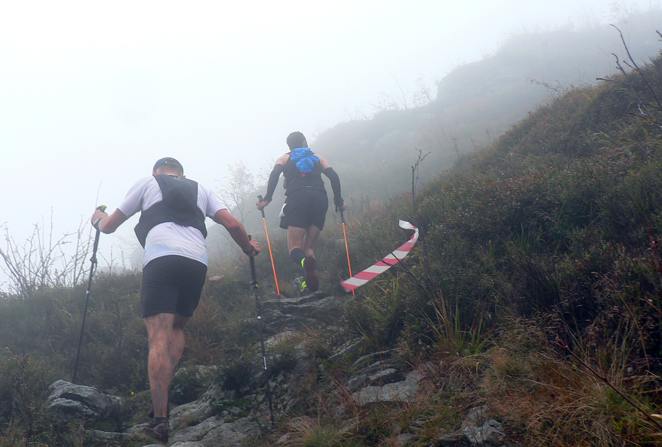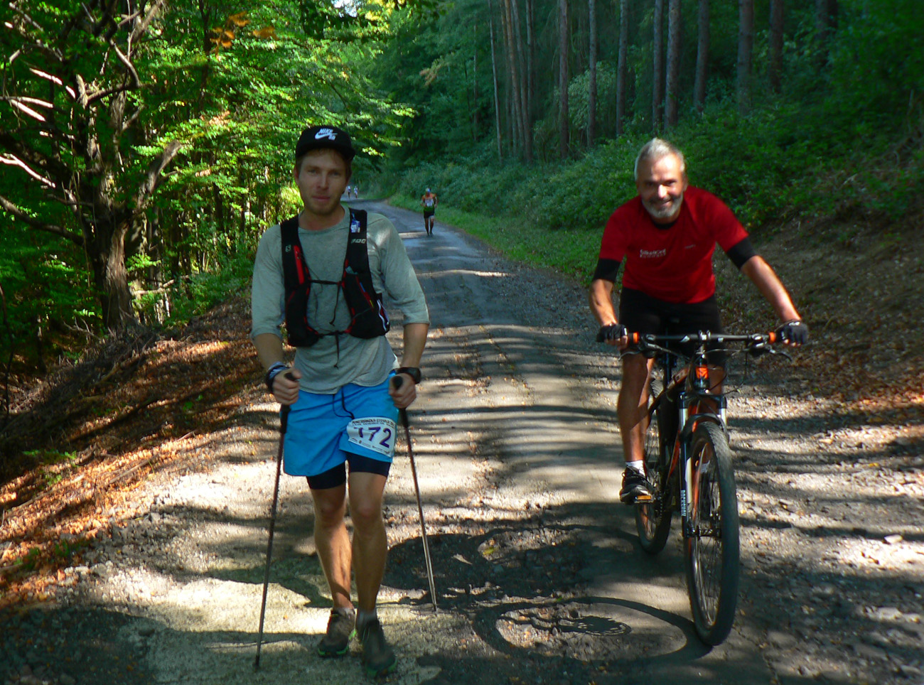 No ľudia, tento rok sa teda diali veci! V prvom rade počasiu totálne preskočilo – normálne, že nepršalo! Trápna snaha vetra na hrebeni Vtáčnika kropiť nás vodou z hmly, zachytenej na konároch stromov, to sa neráta. Ďalej: vypredaná štartovka (300 ultrášov), aj keď nakoniec nás z Handlovej vyrazilo asi 270. Tiež dosť, nie? Možno preto pribudli vo výsledkoch aj veteránske kategórie - nad 50 rokov. A nakoniec udalosť roka: hádam prvý raz sa stretli na jednej akcii dvaja najväčší slovenskí mimozemšťania Majo Priadka a Maťo Halász. Takže sa čakali nadsvetelné rýchlosti a kozmické časy. Viacerí tipovali výsledné časy hlboko pod 10 hodín. Že páni ufóni ignorovali prosbu, aby aspoň pár stoviek metrov po štarte išli pomalšie (starý foťák - pomaly zaostruje), to nekomentujem :-)