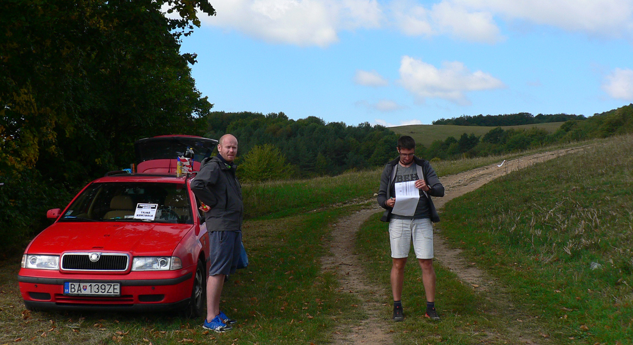 V Kostoľanoch prekvapenie: ufón Maťo (Samozrejme, že je zelený!) si na múriku chystá dáke veci - vraj by mu to nedalo súťažiť bez kontroly, tak počká priateľku a pôjde ďalej s ňou. To je charakter! Vraj naháňali s Majom Japonca a prehliadli tú zamaskovanú K2, aj keď čakali, že tam niekde bude. Majo to vraj tiež spakoval, počkal Paťa Hroteka a robil mu pacera až do cieľa. Chalani, klobúk dole!