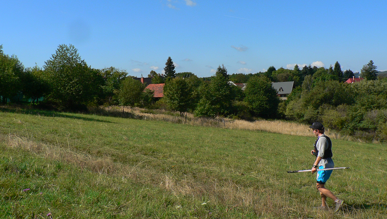 Na K3 a K4 je super to, že sa tam ide chvíľu obojsmerne, mám prehľad kto odchádza a prichádza, dokumentujem čo to dá. Za Kostoľanmi ale niečo nesedí: šípka na asfalte síce ukazuje doprava, ale fáborky sú aj doľava. A po kilometri dokonca v našom smere (rovná cesta, červená značka) ani jedna fáborka, zato vedú husto doľava, úplne iným smerom ako si z mapy a z vlaňajška pamätám. Nepáči sa mi to, tak pre istotu volám náčelníkovi, či nemuseli kvôli niečomu zmeniť zaužívanú trasu. A že nie. Tak to musel niekto preznačiť – idem pozrieť lepšie a ozaj: na kríkoch zvyšky „našich“ fáboriek, niekto ich otrhal a premiestnil. No pekne, vy svine! Premiestňujem druhý raz. Od starších manželov nižšie na lúke sa ale dozvedám, že sa tu chystajú nejaké miestne bajkové preteky a ich organizátori tiež čosi vešali. Tak možno nie zákernosť to bola, len nedostatok komunikácie. Hádam tam nik príliš neblúdil. Aspoň som trochu dvihol náčelníkovi adrenalín, isto sa už v tom Veľkom Poli nudil hehehe...