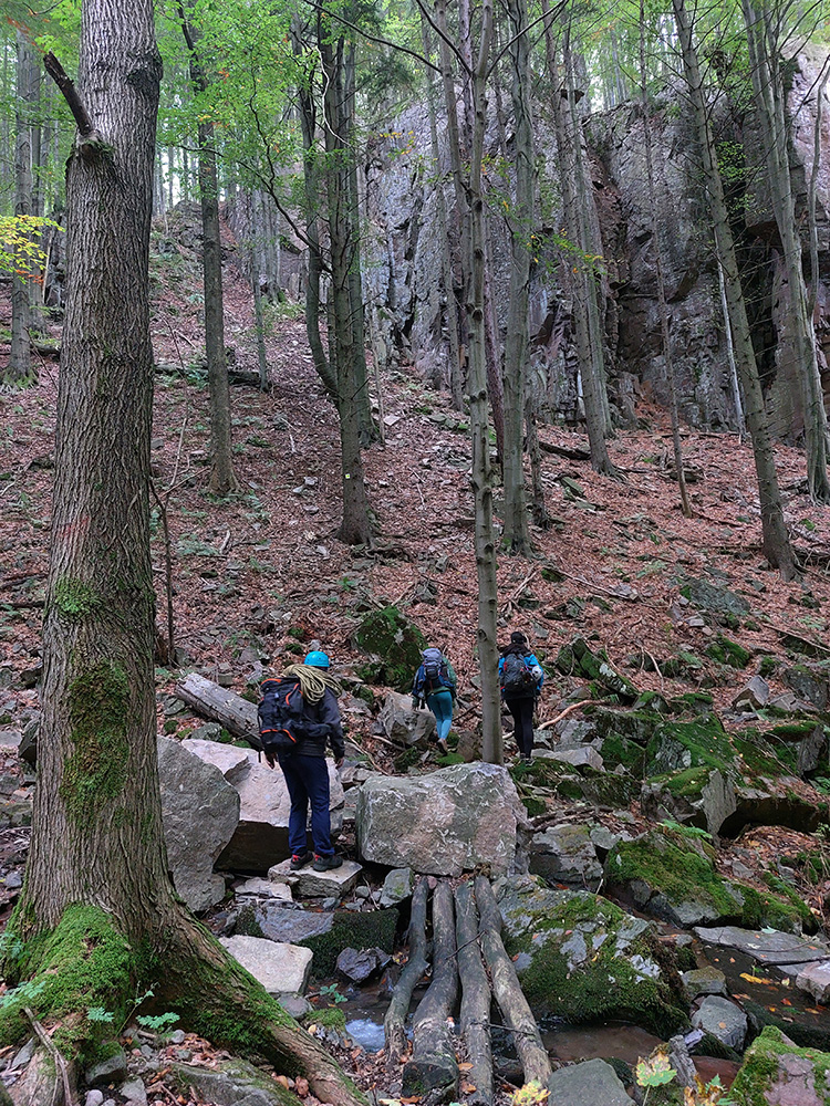 Ochladenie koncom septembra aj so severným vetrom bolo tak na hrane – zima na ruky. Ale že v lese hádam duť nebude a slnko že tiež občas hádam vylezie, tak sa tri kusy turčianske rozhodli ešte poliezť, a pretože miesto v aute bolo, nanominoval som sa. Že kým ich to bude baviť, pobehám si to tam, a potom sa hádam ešte spolu prejdeme a čo – to mi ukážu. Je tam čo obzerať.