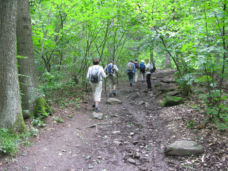 Vyrazili sme od Počúvadlianskeho jazera, ktoré je tiež pozostatkom po baníckych aktivitách. Strmo do kopca po zelenej náučnej značke, priesekom v lese až ku studničke. Od nej už chodníček vedie traverzom a vychádza na lúku pod Sitnom. Z hmly na nás vykukovali skaly ukrývajúce známu skalolezeckú oblasť. Na ňu však tentoraz čas nevyšiel.