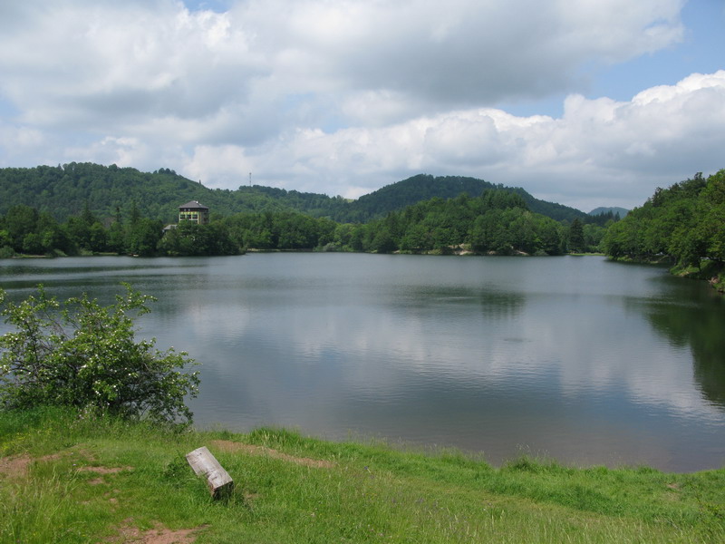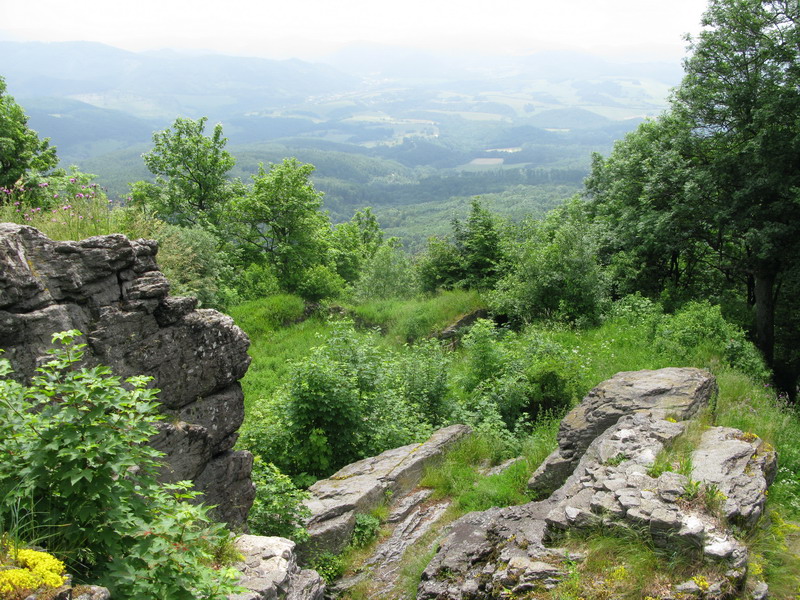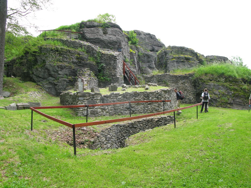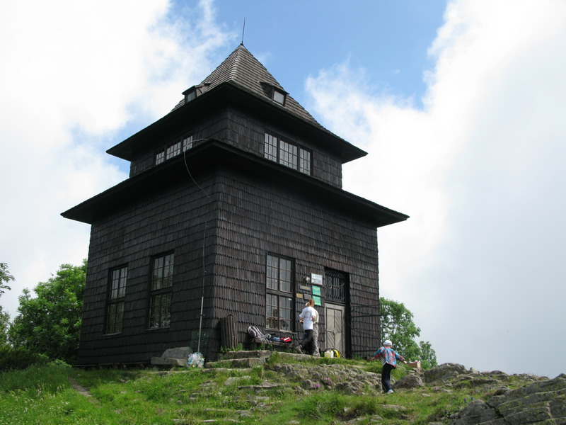 Na vrchole je okrem vysielača aj budova s rozhladňou, kde je obchodík so suvenírmi a občestvením. Aby sme sa nevracali tou istou cestou, tak sme na návrat použili žltú značku vedúcu popri Tatárskom jarku. Predierajúc sa porastom po chodníku, ktorým už dlhšie nikto nešiel sme obdivovali dnes už nefunkčné dielko. Muselo to tu byť v stredoveku celkom zaujímavé.