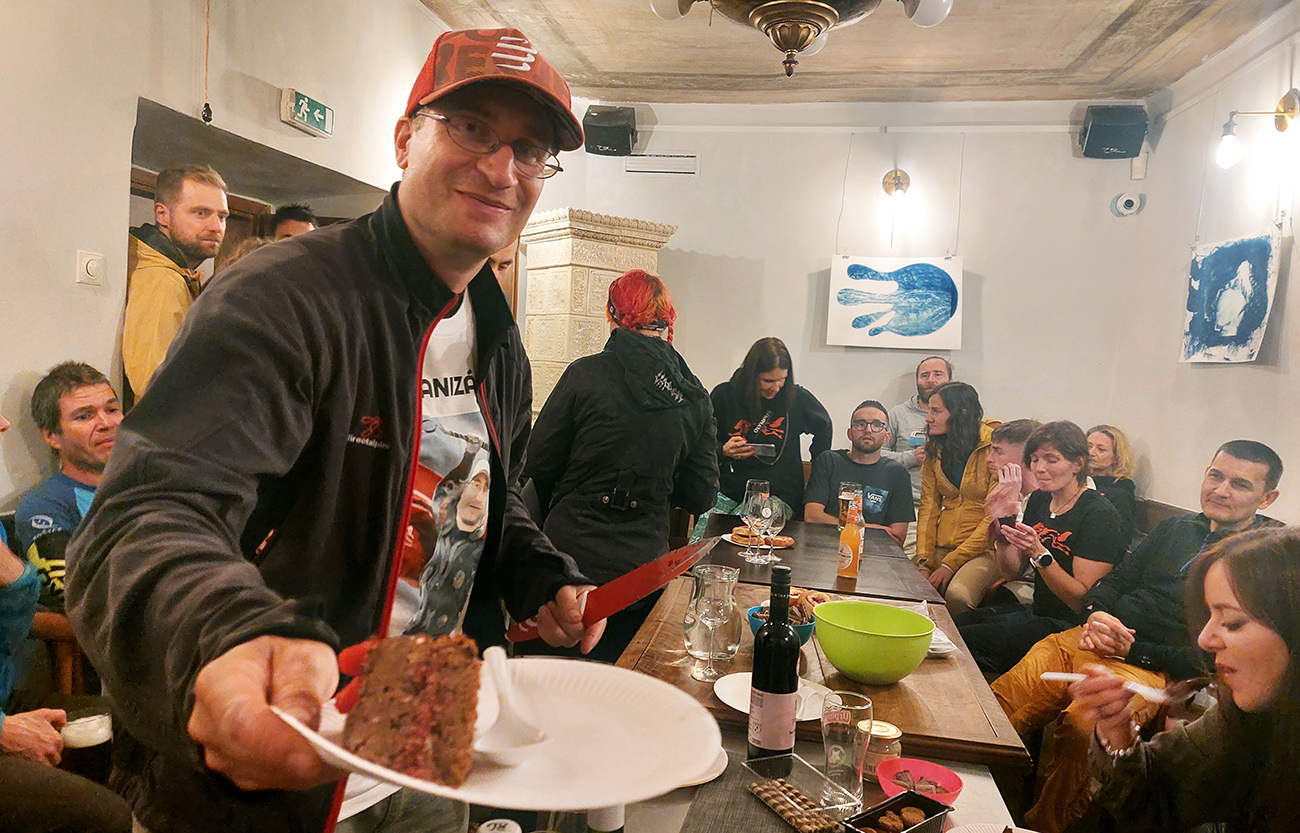 A tam to už vrelo, lebo bulvár sa ozaj dopotácal medzi poslednými. Historicky najteplejšia októbrová piatková noc mala svoje pokračovanie aj v sobotu, tak sa kvasilo von, a potom až do druhej (do záverečnej) dnu, v suchu. Lebo tie lejaky ozaj prišli, ale aj narodeninovú tortu bolo treba rozobrať a oslávencovi zožrať (Bulvár sa samozrejme priživil rád a týmto Náčelníkovi Radovi gratuluje), aj zvyšky z kontrol bolo treba podojedať, aj ultrababy samozrejme viac vynikli v tých večerných róbach za svetla. Nápoje, rôznymi promilami sýtené, tiekli prúdom, blbé reči tiež, dokonca aj Nízkotatranská stíhačka prišla na pretras. A všetci držali palce Paťovi Hrotekovi, ktorý sa za veľkou mlákou akurát dostával do tempa na najdôležitejšom svetovom Backyard Ultra.