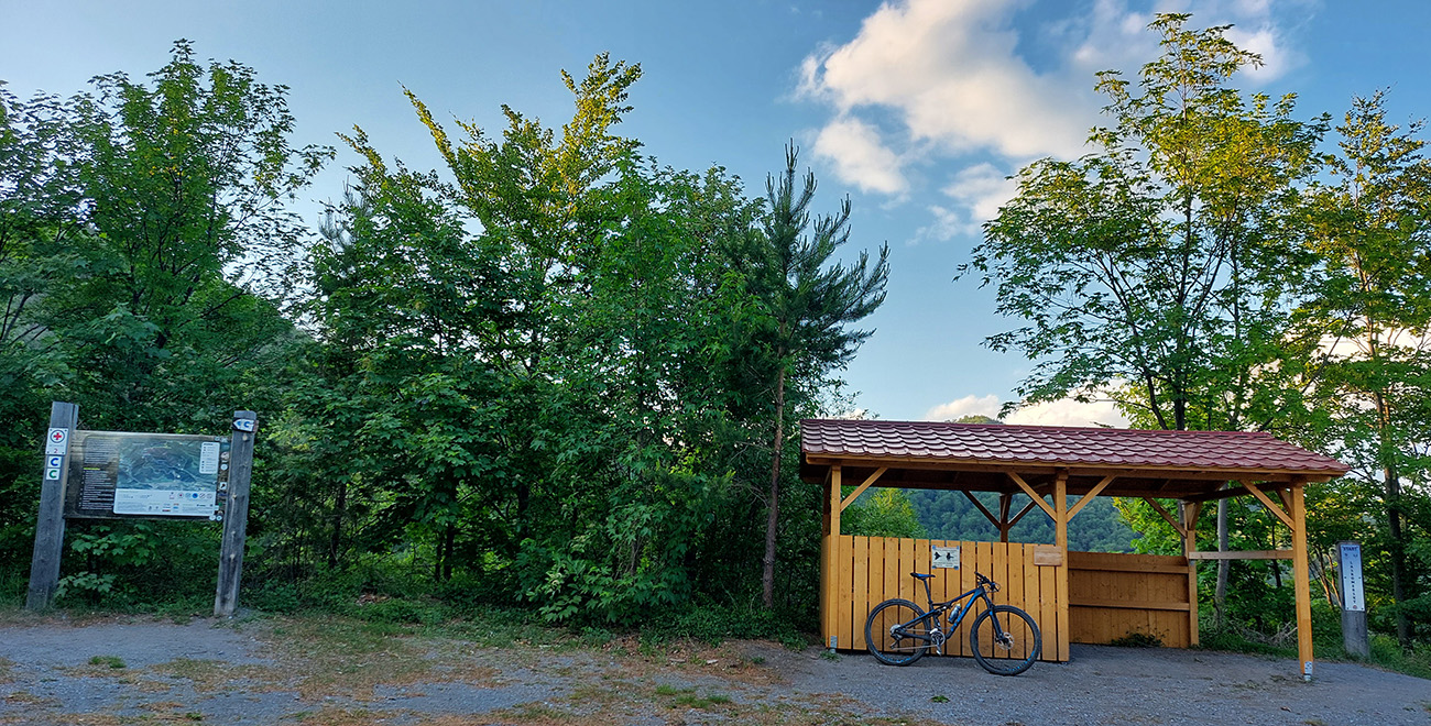 No a už len finále – prevažne plynulé zjazdovanie lesmi a lúkami, po dobrej ceste. Vychytal som aj posledné teplé lúče a na dvoch križovatkách som ešte trochu zvažoval možnosti: z Riečanského sedla doľava cez trail Koreňovka sa mi už vytriasať nechcelo, tak doprava zvážnicou. Tá ma ale zase omrzela o kúsok ďalej, na Bulíkovej, tak som to stade švihol dole Laskomerským trailom. Ale strmé serpentínky v jeho závere si nechám na inokedy, emigroval som z trailu rovno, variantom pre antitechnikov. A potom už len hladko dole Laskomerskou dolinou a symbolický záver na Medenom Hámri, v parčíku cisárovnej Sissi pri turistickej mape.