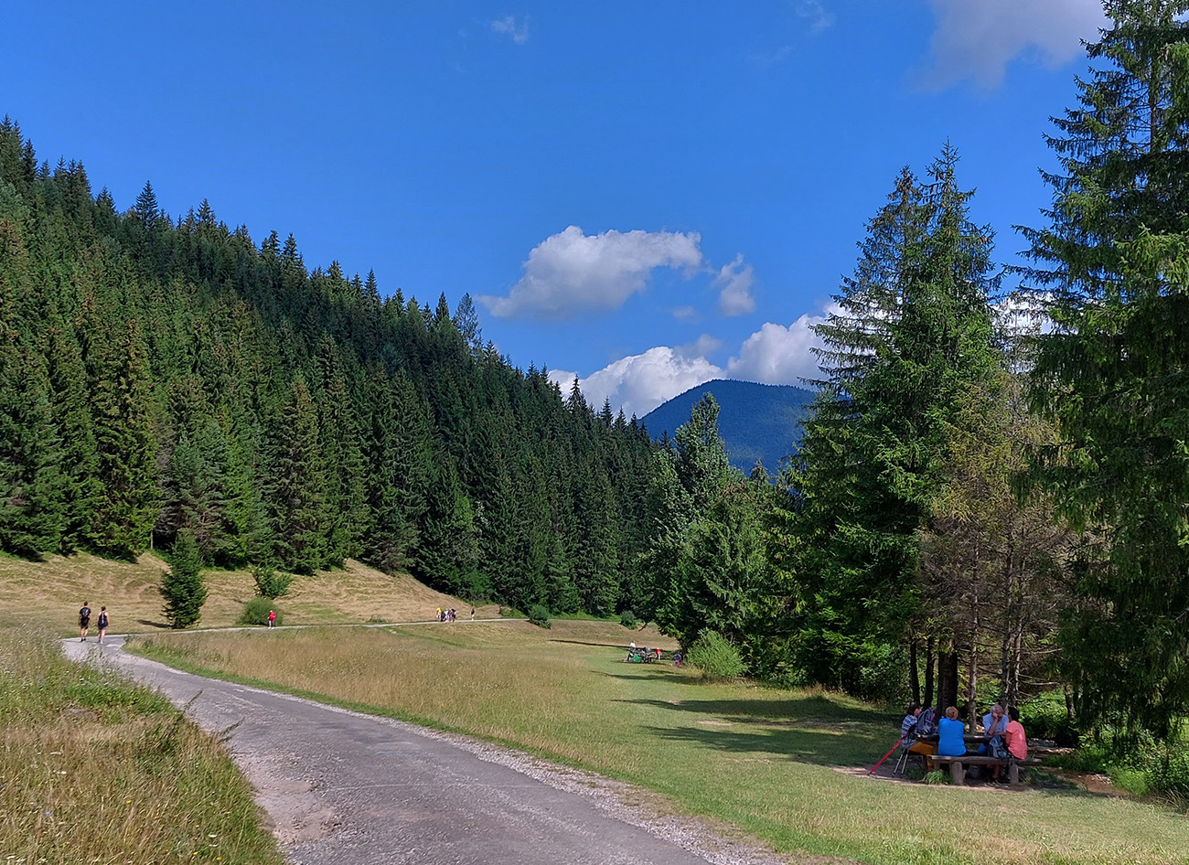 Aj z Osady by sa dala hlavná cesta obabrať – cez Liptovskú Lúžnu na Patočiny a odtiaľ poza Fedorku až nad Korytnicu. Chuť by aj bola, ale začal ma čas tlačiť, tak nabudúce. Každopádne po trase bývalej lesnej železničky - Korytničky to bola tiež príjemná jazda, až na ten hukot z cesty. Ale aspoň som sa niečo o histórii dozvedel a za jazdy niečo pojedol. Celkom dobre mi padol oddych na rovinke pred posledným dlhším výjazdom.