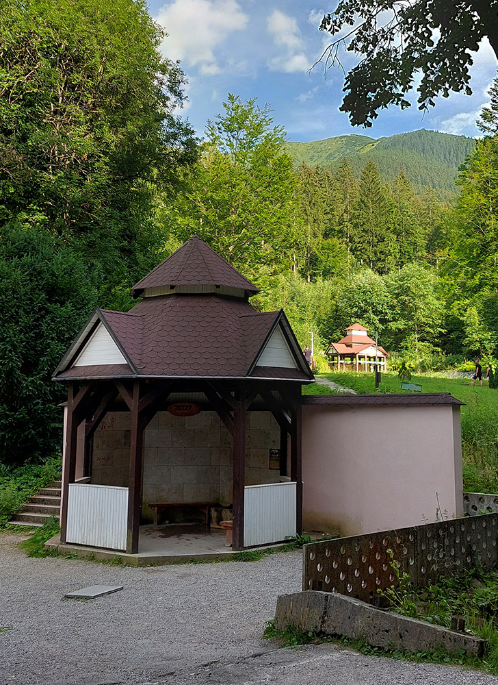 Od plničky minerálky do kúpeľov ešte asfalt samozrejme, tam druhá poriadna kofola a nejaká tá keksíková energia z reštiky postupne sa prebúdzajúceho penziónu. Vraj aj plnička sa znovu rozbehne, aj súdne spory sa už vraj končia - tak hádam tá Korytnica znovu ožije. Prejazd pomedzi staré pavilóny je stále ako z hororu, ale altánky s prameňmi už sú zrenovované a ľudí sa tam motalo plno. No paráda, držím palce. Do Sedla pod Babou kvalitná šotolina, odtiaľ do Hiadeľského sedla ešte lepšia cesta, tak všetko na zavretých tlmičoch, aby som bol efektívnejší :-) Kečka sa už na mňa spredu usmievala, ešte som bol zvedavý na zjazdnosť traverzu popod Kozí chrbát. Tesne pred Hiadeľským sedlom som posledný raz dotankoval, spod Prašivej toho dosť vyteká a na viacerých miestach: