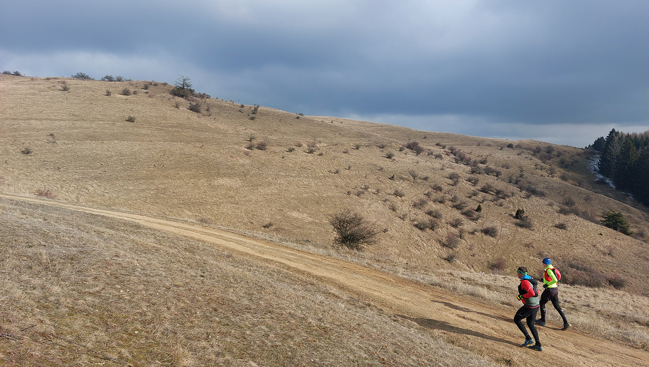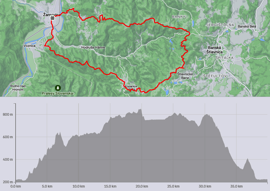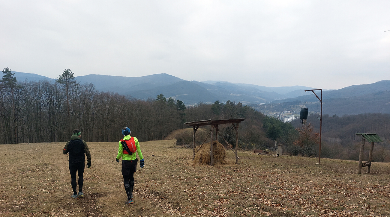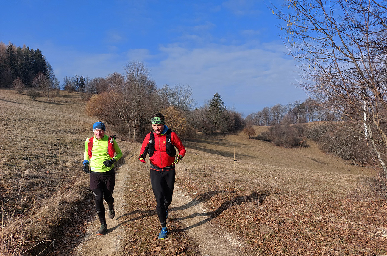 Pretože preveľmi ľúbime pobehovať po lesoch, nedalo sa nedať o tom vedieť aj na Valentína. Teda dva dni po, keďže pripadol na pracovný piatok a v sobotu sa museli niektorí zamilovaní z toho asi ešte spamätávať. Aj zimu ľúbime (síce viac zasneženú), tak prečo sedieť za pecou, keď sa podľa SHMÚ z Arktídy až k nám akurát dovalila „najchladnejšia vzduchová hmota tejto sezóny“. Zas ale nič tragické, aj keď ráno na štarte v Žarnovici okolo -8 a teplota celý deň nevyliezla nad nulu. Ale na trase samozrejme kopčeky, k nim málo mrakov a vetra. A aj slniečko nás na ceste poohrievalo. Aj preto rozkaz znel – plavky so sebou! Termálny akvapark pred cieľom bol len tou povestnou čerešničkou na torte, svetovými unikátmi sa to cestou len tak hemžilo – veď ako v Štiavnických vrchoch. To aj preto bolo takto naplánované, aby pobehovanie v tej februárovej mrazivej sivote nebolo len také hluché a malo nejakú pridanú hodnotu. Čiže okruh okolo Hodrušskej doliny s parametrami asi 40 km a 1200 výškových vyzeral takto: