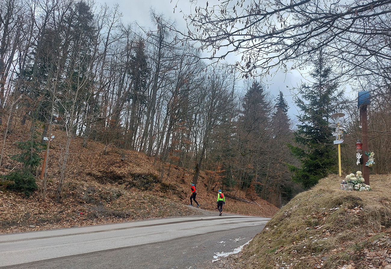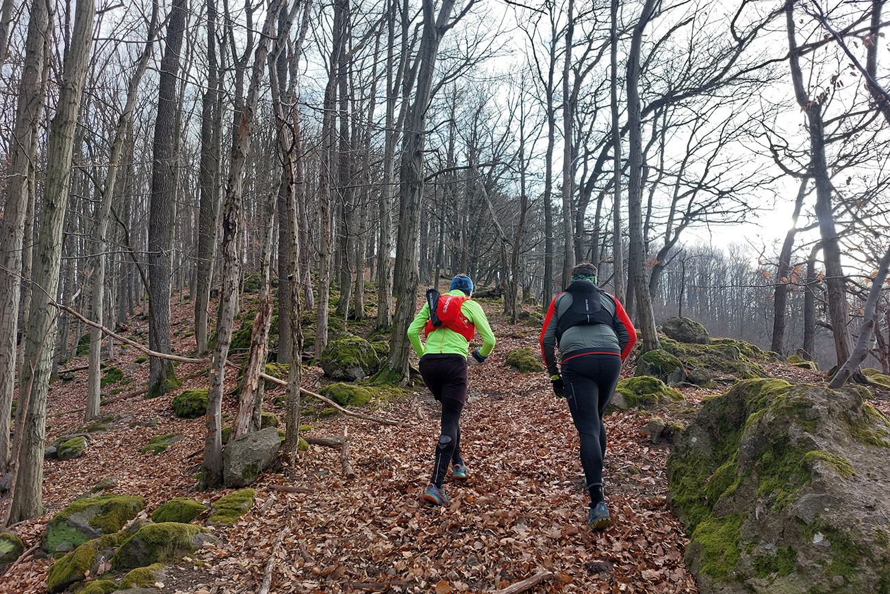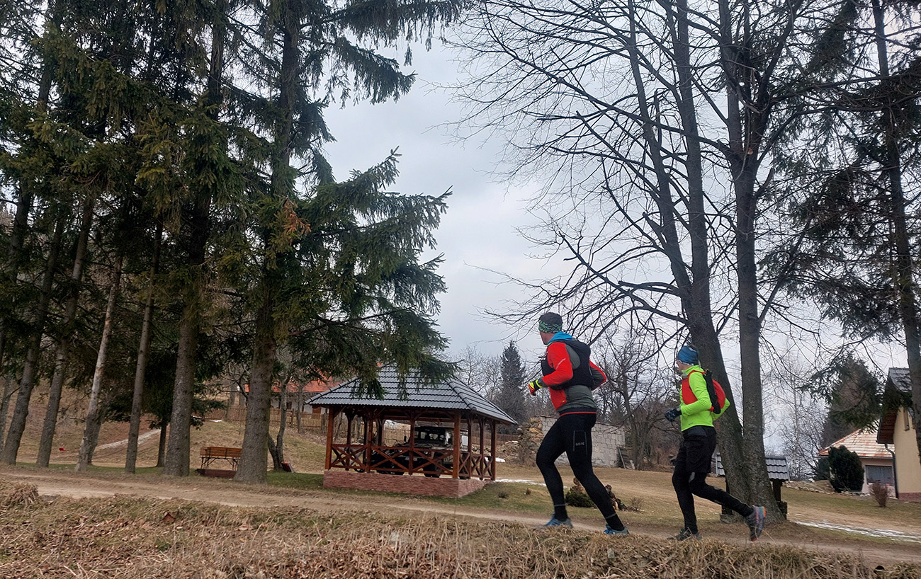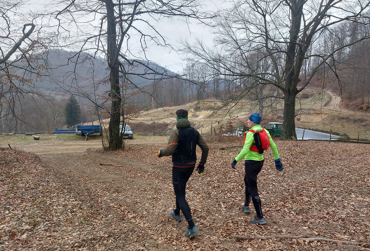 Pretože preveľmi ľúbime pobehovať po lesoch, nedalo sa nedať o tom vedieť aj na Valentína. Teda dva dni po, keďže pripadol na pracovný piatok a v sobotu sa museli niektorí zamilovaní z toho asi ešte spamätávať. Aj zimu ľúbime (síce viac zasneženú), tak prečo sedieť za pecou, keď sa podľa SHMÚ z Arktídy až k nám akurát dovalila „najchladnejšia vzduchová hmota tejto sezóny“. Zas ale nič tragické, aj keď ráno na štarte v Žarnovici okolo -8 a teplota celý deň nevyliezla nad nulu. Ale na trase samozrejme kopčeky, k nim málo mrakov a vetra. A aj slniečko nás na ceste poohrievalo. Aj preto rozkaz znel – plavky so sebou! Termálny akvapark pred cieľom bol len tou povestnou čerešničkou na torte, svetovými unikátmi sa to cestou len tak hemžilo – veď ako v Štiavnických vrchoch. To aj preto bolo takto naplánované, aby pobehovanie v tej februárovej mrazivej sivote nebolo len také hluché a malo nejakú pridanú hodnotu. Čiže okruh okolo Hodrušskej doliny s parametrami asi 40 km a 1200 výškových vyzeral takto: