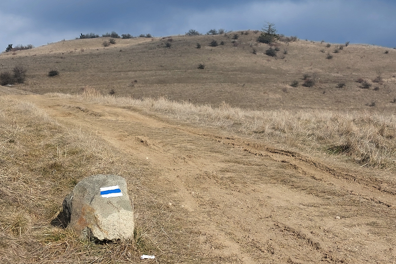 Až pod Tanád je to scenéricky jeden z najkrajších chodníkov v okolí, s ďalekými výhľadmi z rozľahlých lúk. Dominuje Sitno. Ani pod nohy sa netreba veľmi pozerať. Už sme tu zo dvakrát boli, aj Štiavnický ultrapunk sa tadeto behá, tak sme vymenili červenú za modrú.