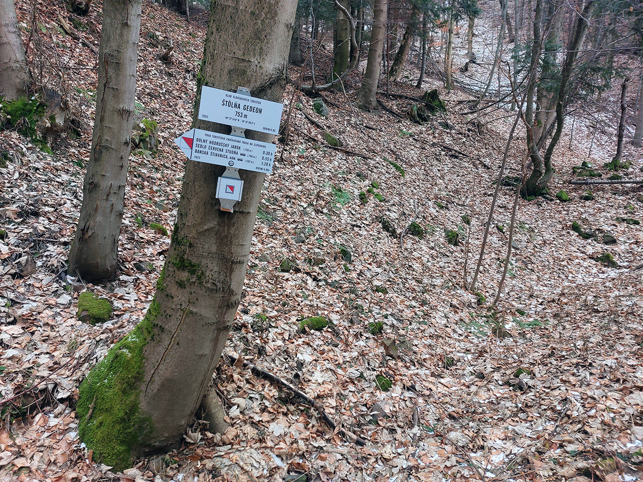 Ale bol to zámer, lebo práve tade, okolo bývalej štôlne Gedeon, viedla od r. 1874 prvá oficiálne vyznačená turistická trasa v Európe. Takže sme sa takmer trafili do jej 150. narodenín. Že má dnes Slovensko tisícky kilometrov značených trás, že na značenie máme aj štátnu normu a ochrannú známku, a že celý systém značenia máme zapísaný aj do Reprezentatívneho zoznamu nehmotného kultúrneho dedičstva Slovenska, to nám môžu závidieť mnohé štáty sveta.